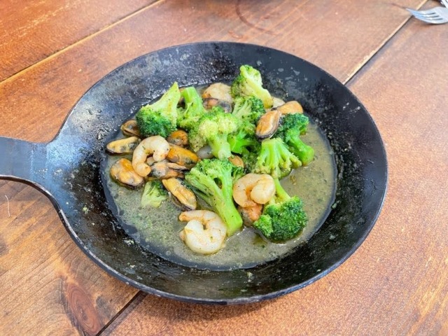 野菜を加える!魚介とブロッコリーのアヒージョ