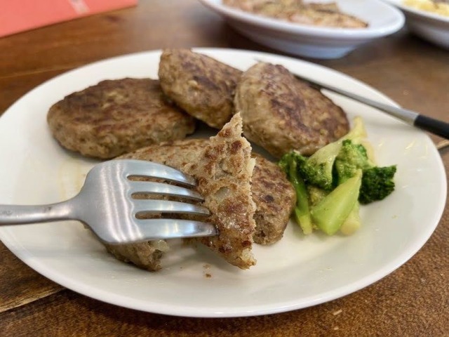 アンガスビーフと豚肉の合挽き使用で、しっとりジューシーかつ肉の旨みがしっかり感じられます。