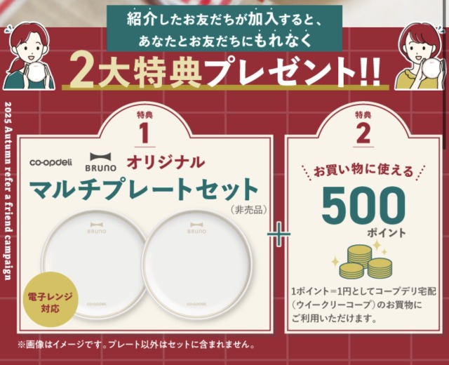 コープデリはお友達紹介で加入すると2つの特典がもらえます。